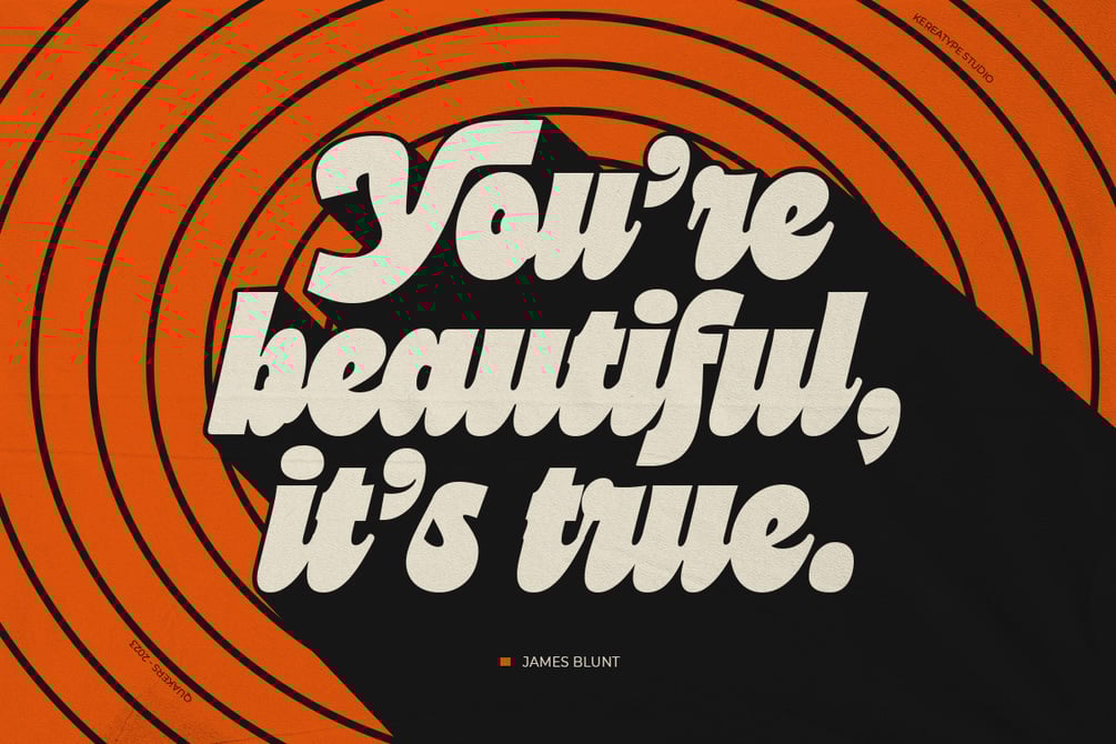 Quakers is the evolution of our previous font, 'Cuanky,' in its italic version,transformed into a captivating script typeface. Embracing the essence of retro design, Quakers exudes an aura of vintage elegance combined with modern boldness and elegance.